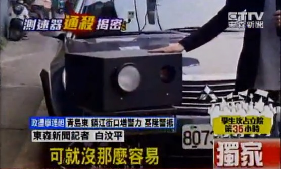 衛星導航不只告訴你方向,就連測速器在哪都能報你知,一般測速照相機可以透過GPS顯示,不過像這種移動式的偵測器可就沒那麼容易,路邊架起三腳架,員警放上這一台移動式測速器,民眾開車經過未必能發現,這種測速器不定時、不定點設置根本無法在導航上顯示,不過市面上販售的反雷達偵測器卻能輕而易舉的感應,聲音越來越急促,因為車輛已經越來越靠近測速器了,這種反雷達偵測器把接收頻率調得跟測速器所發出的雷達頻率一樣,因此只要一經過警示音就會提醒,但也因為是偵測頻率在一般市區道路很容易出現誤判情形。反雷達偵測器業者郭年益:「比如說超商自動門或銀行提款機,它打出來的波就是商用頻率,就是K頻,我們的車如果經過也會偵測到這個波。」