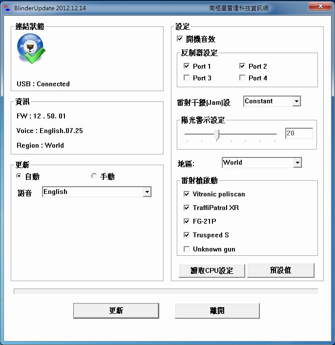 -~8q0x.x:r專業反雷達雷射測速器超級討論區請問為什麼我被雷射槍打到 都只有叫 沒有講說是什麼槍枝呢? 這該從哪設定? 我有更新到最新版 設定台灣版本...感謝
