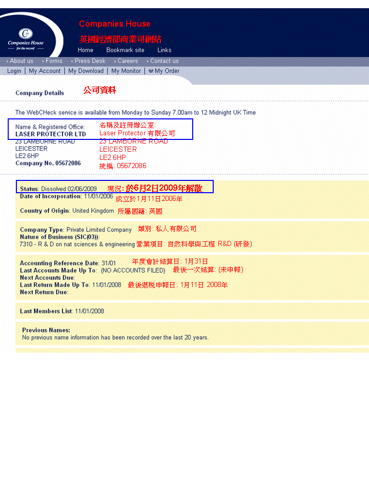 輸入 "Laser Protector Ltd",並點入