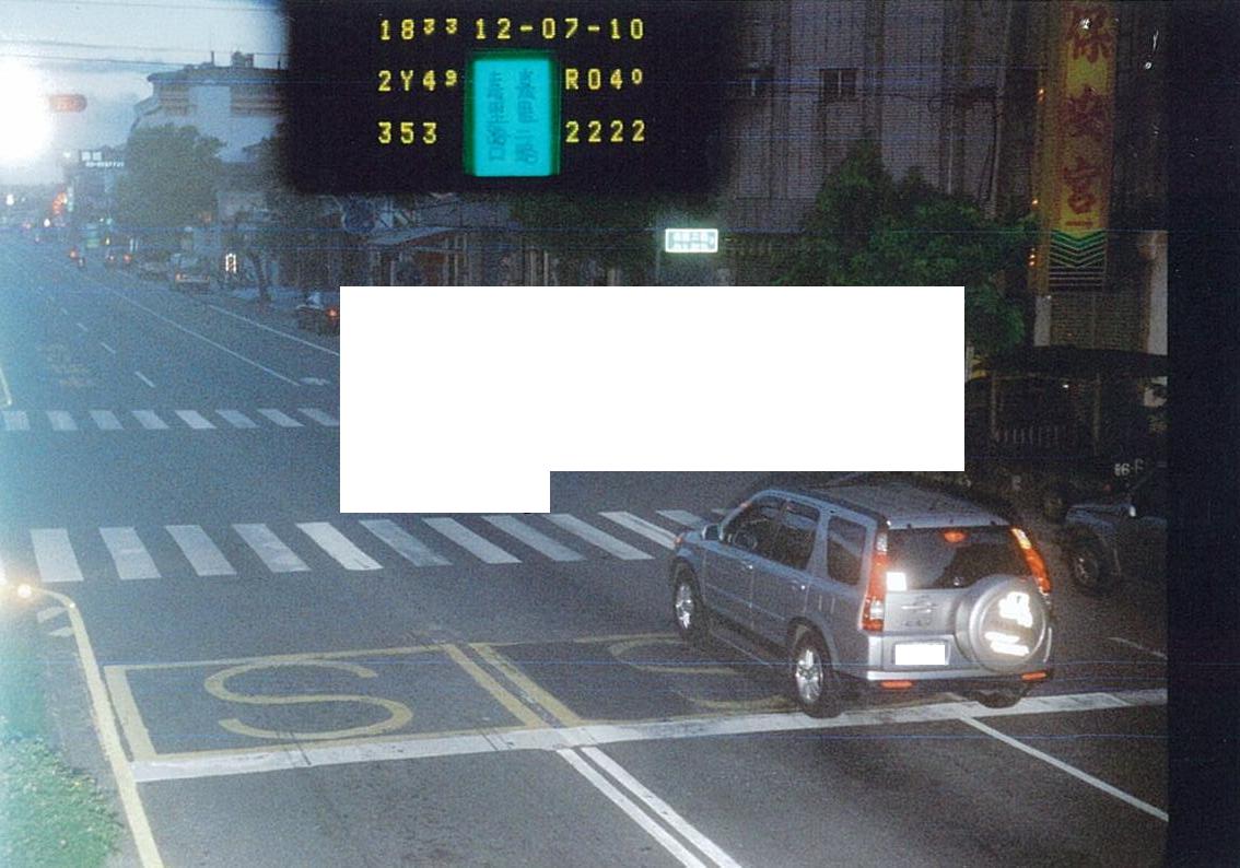 ·í¬õ¿O«G°_®É¬ù 1 sec ¤§«á(¥i³]©w®É¶¡®t), ¨t²Î¦P®É¶i¦æÂô¬õ¿O»P¶W³t·Ó¬Û¤u§@.  ­Y¨®¤l«eºÝ³q¹L·PÀ³±ø(B) «á, ·Ó²Ä¤@±i, ¦¹®Éµø¬°¬õ¿O¶V½u. 1 sec (¥i³]©w®É¶¡®t)¥H«á¨t²Î·|¦Û°Ê©çÄá²Ä¤G±i·Ó¤ù, ­Y¦¹®É·Ó¤ù·í¤¤«á½ü¤w¸g³q¹L¸ô¤f°±¤î½u, ¦¹®É§Y§P¨ä¬°Âô¬õ¿O. ¦Ó²Ä¤G±i·Ó¤ù·í¤¤·|¦P®ÉÅã¥Ü¹H³WÂô¬õ¿O¨®½øªº¨®³t, ­Y¬O¦P®É¶W³t¥i¥H¤@¨Ö³B»@.