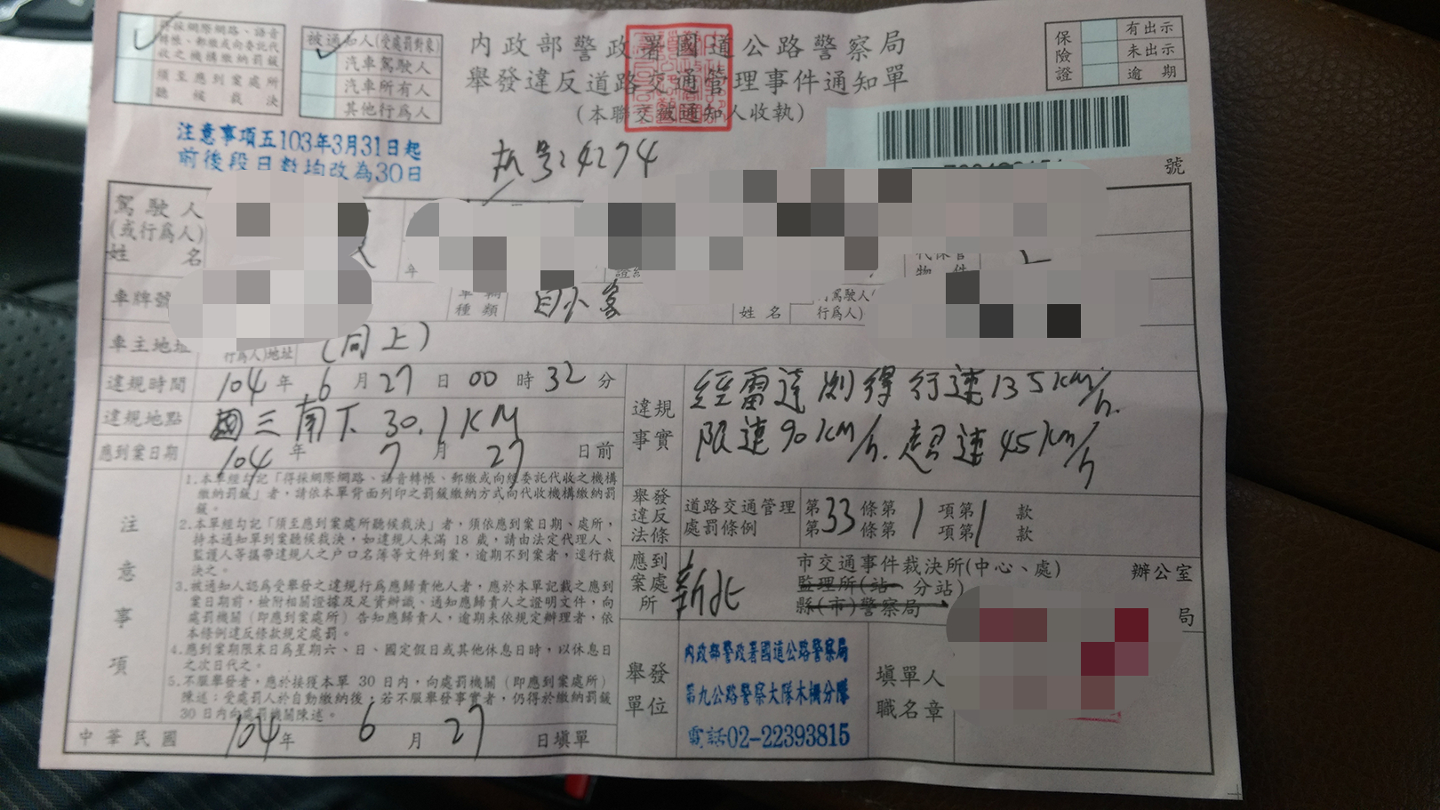 罰單貼上來看看,確定是什麼設備取締的,警車不是只有雷射可取締,還有雷達不要忘了!