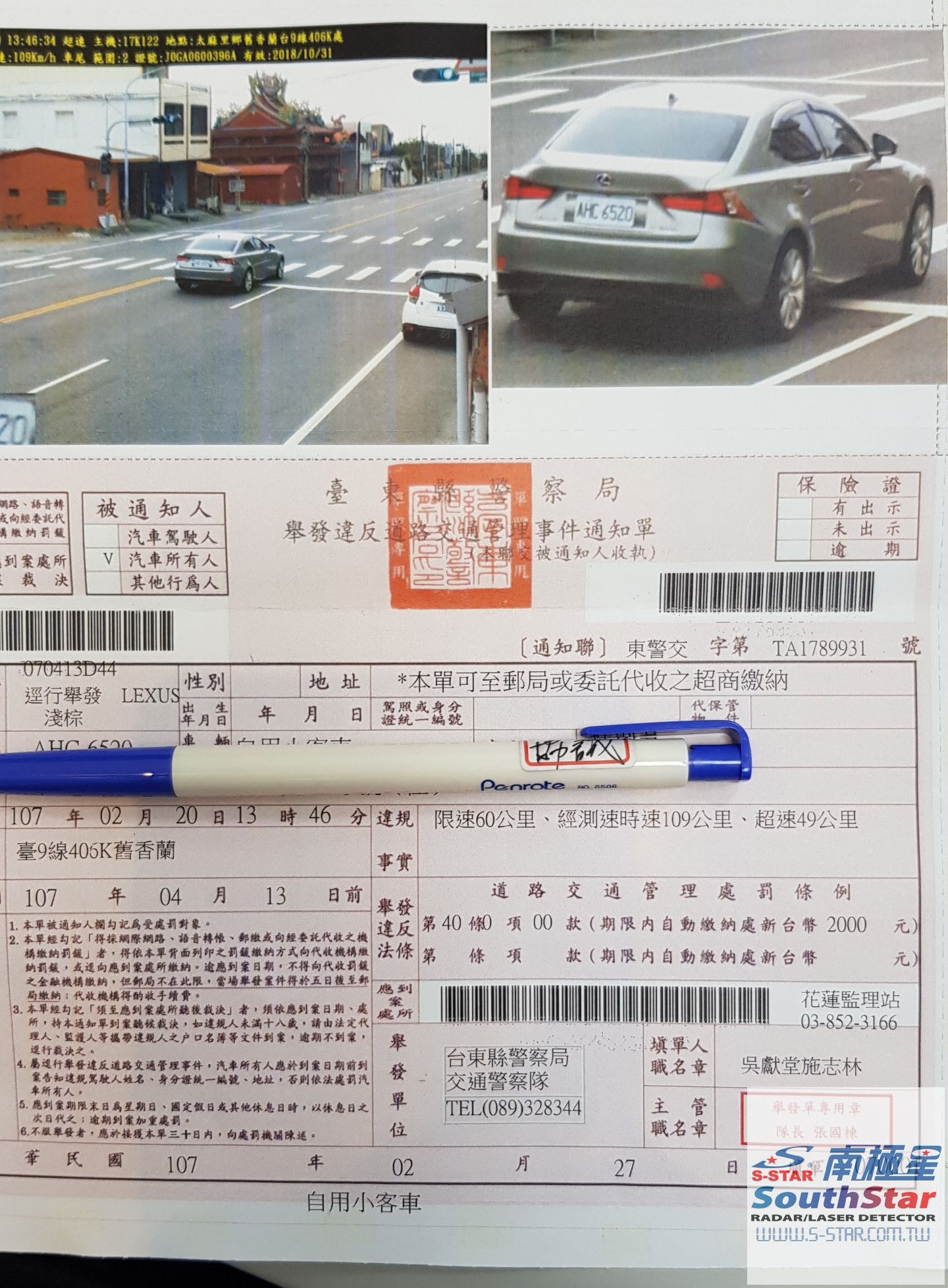 結果看寒單爺沒事~~結果是初五去屏東找小楊裝HP-905~~~在台東香蘭中標了~~測速器好像沒聽到警示~~~