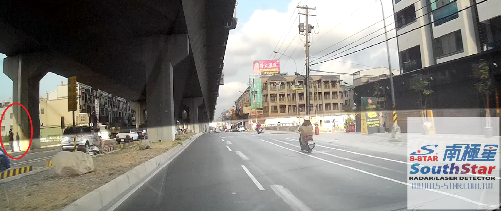仁武區澄觀路 特殊教育學校前,橋墩後面雷射槍印鈔中!