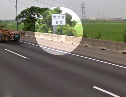 一個白色招牌 大型車靠右 的後方