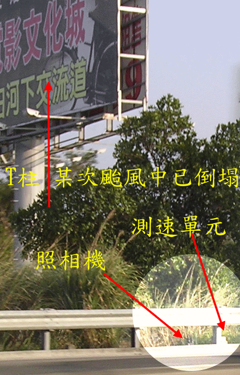 天線與相機均放置在中央護欄上...