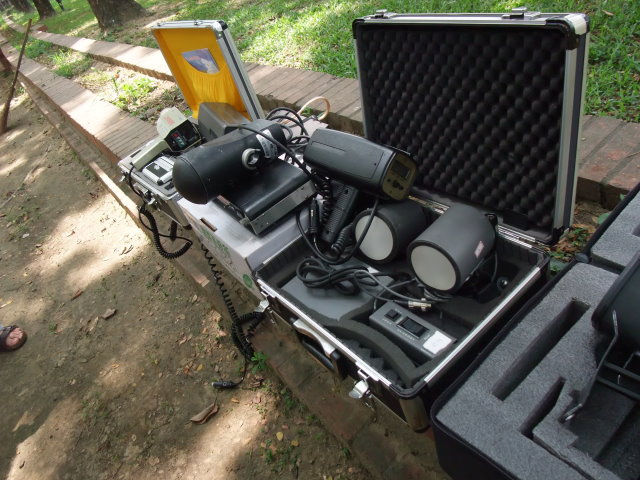 對呀..那台"三腳架"是放在護欄與草皮的交接處.