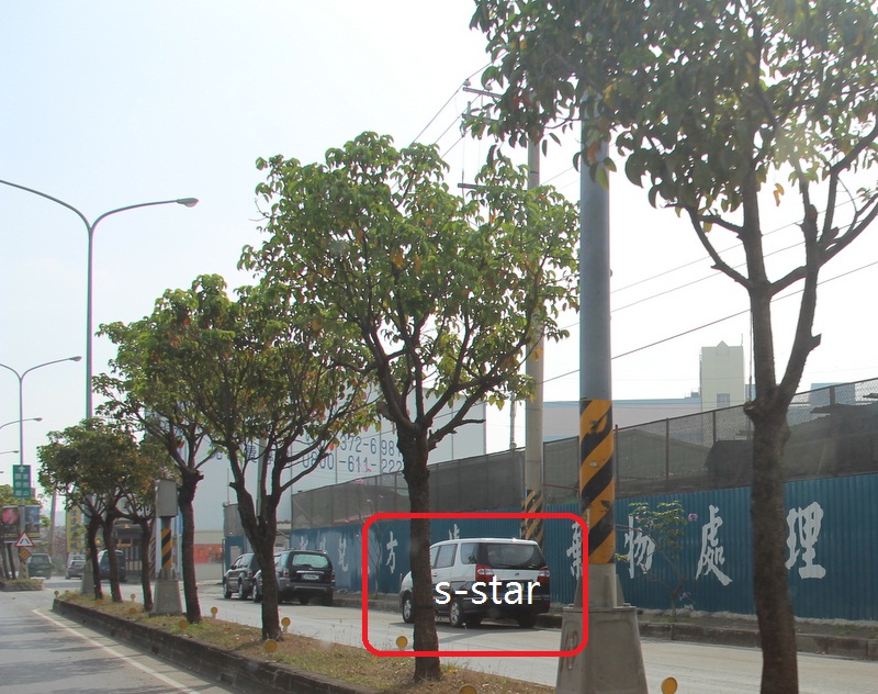 再 陞達堆高機前 (很高的白色鐵皮屋噴的字樣)