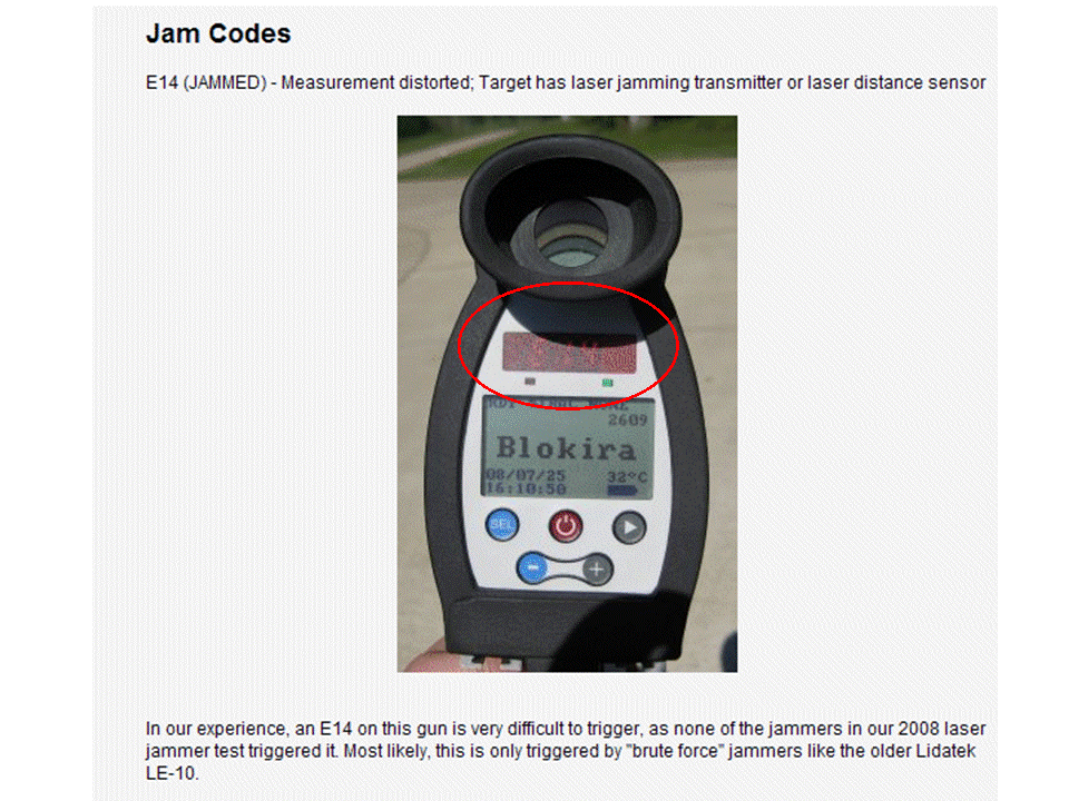 E14 (JAMMED) - Measurement distorted; Target has laser jamming transmitter or laser distance sensor