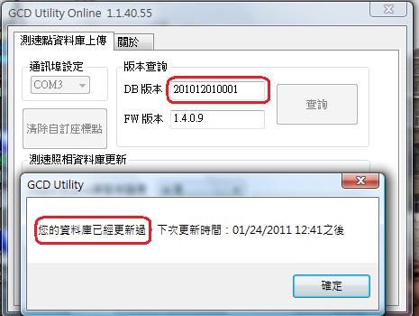 2011/1/3 南極星測速器釋出最新版數據, 本次修正主要針對以及12月份國道高速公路與各縣市陸續加入之固定照相桿設置地點, 請愛用者即刻上網下載最新版數據 (本次釋放版本號為 090 or 1001)